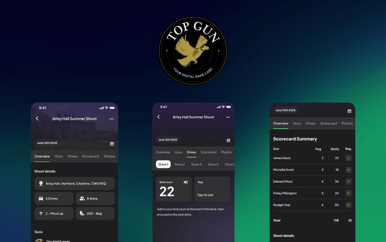 TopGun is an iOS and Android mobile app designed to modernise how shooting events are recorded, analysed, and shared. The app combines a robust, intelligent shot recording system with social features that encourage competition, progression, and community engagement.